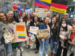 Nachdem ich mich den Abend vorher von meinen Liebsten verabschiedet habe, ging es am 26.08.2022 früh am Morgen los nach Dresden. Nach der Verabschiedung ging es mit einer anderen Austauschschülern ab nach Frankfurt. Angekommen am richtigen Gate, waren noch mehrere Rotary Austauschschüler den allen das selbe Abenteuer bevorstehte. Nach gut 1ner Stunde Verspätung begann das Boarding für den 11 Stunden Flug. Ein gigantisches Flugzeug mit der besten Sitzverteilung. In der Reihe vor- und hinter mir ein Baby. Diese waren aber verhaltensmässig ruhig. Insgesamt war nicht viel mit Schlaf da wir quasi vor der Sonne abgehauen sind. Sonnenuntergang war erst als wir angekommen sind wo es in Deutschland schon mitten in der Nacht war. In Bogota standen wir gut 90 min beim Micracionscheck. Ein Trubel an Menschen, Lautstärke und Musik. Man merkte direkt das man wohl in Lateinamerika sein muss. Vollkommen fertig wurden wir von unseren Gastfamilien in Empfang genommen. Musik, Plakate, Tanzen, Luftballons, jede Menge Menschen und ganz ganz viel Trubel. Es war wirklich süß wie sie sich alle gefreut haben und einen in Empfang genommen haben. Nach 1000 Fotos in verschiedenen Konstellationen , gingen wir zum Auto. Sie waren ganz stolz mir zu präsentieren das sie ein deutsches Auto fahren:) Als sie aber meine Koffer und das Auto sahen hatte sich die anfängliche Euphorie schnell geändert haha. Ein kleiner VW, 2 Koffer und 5 Menschen, aber meine Gastmutter meinte mal”Wenn die Tür zu geht passts” und das ist hier ziemlich oft so. Angekommen am Haus der Schwester meiner Gastmutter bellte mich erstmal der Hund Rocco lautstark mitten in der Nacht an, nach insgesamt 15 Stunden Reise war das wirklich sehr erfreulich. Mittlerweile sind wir aber beste Freunde. Naja angekommen in der Wohnung warteten die ganze Familie, Nachbarn, Oma, Opa, und sogar der Doktor. Der Onkel hatte Geburtstag so feierten wir also bis mitten in die Nacht. Ich schaute auf mein Handy, 7 Uhr morgens meine Freunde schrieben mir schon ob ich gut angekommen seie. Gegen um 8 deutscher Zeit ging ich dann ins Bett was noch 15 Stunde Reise wirklich nötig war. Einen wirklichen Jetlag habe ich nicht ich kann nicht länger als 8 schlafen aber sonst ist alles supi.